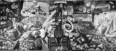 Malak Mattar, "No Words," oil on primed linen, 218 x 485 cm, 2024 (courtesy of the artist).